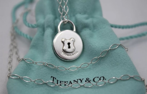 Vintage Tiffany Co Sterling Silver Round Padlock Keyhole Pendant Tc 18 Oval Chain Rare Etsy Uk